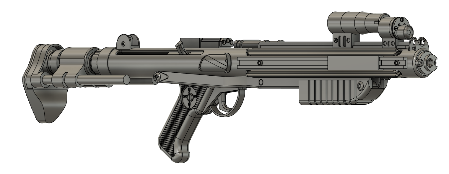 L'ensemble du fusil est disponible gratuitement à cette adresse, tout est fait pour que ce soit facilement emboitable après l'impression.
