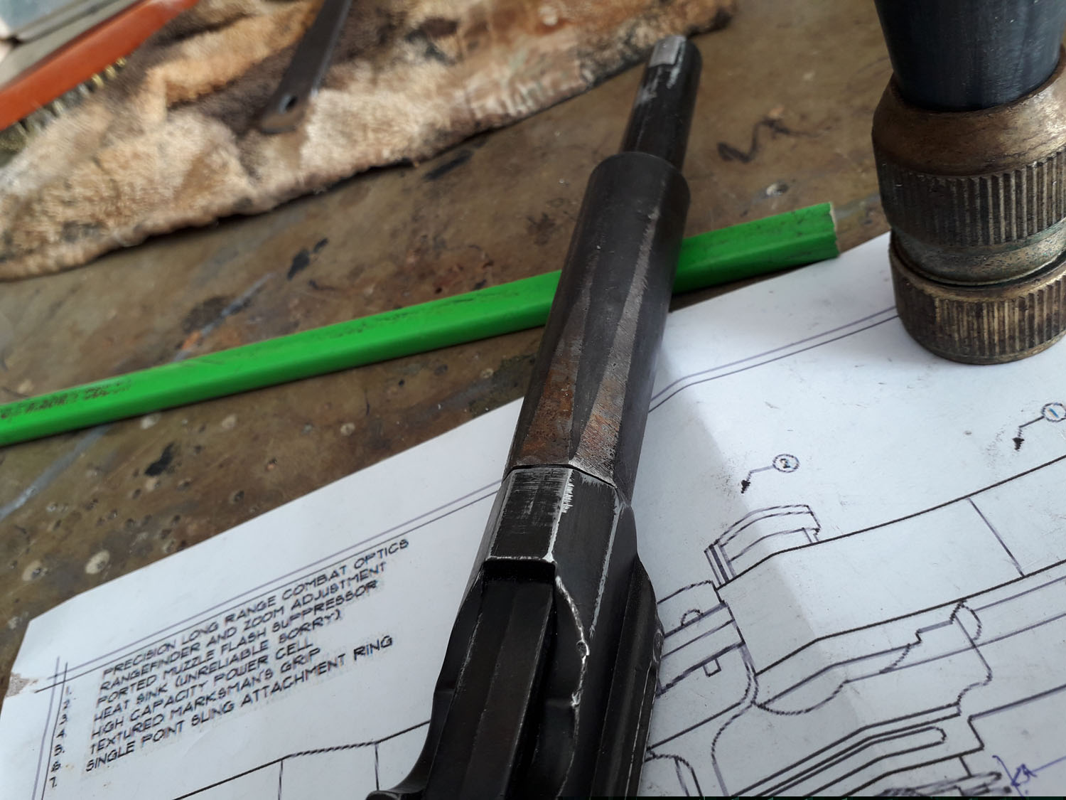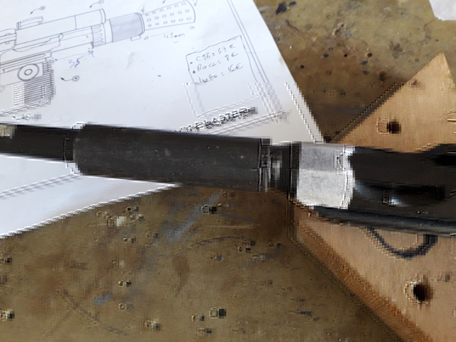 Le tube rapporté sera définitivement collé à la pate epoxy. Le canon sera raccourci de quelques centimetres.