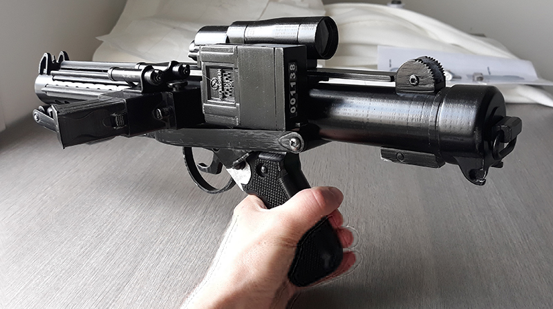 Je vais ouvrir le bal, avec deux réalisation en cours, un fusil blaster E-11 (Version Empire Contre Attaque), ainsi qu'un Blaster DL-44 mais sans lunette puisqu'il servira comme arme de poing d'un officier impérial.