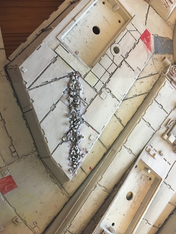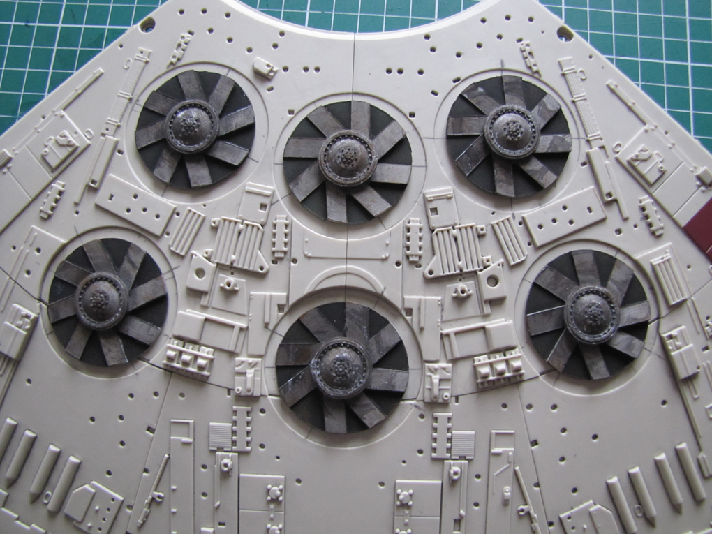 Pour ma part, j'ai aussi un peu bossé ce week-endJe vais pouvoir me repencher sur la coque inférieure pour compléter l'éclairage, la tourelle et la rampe.