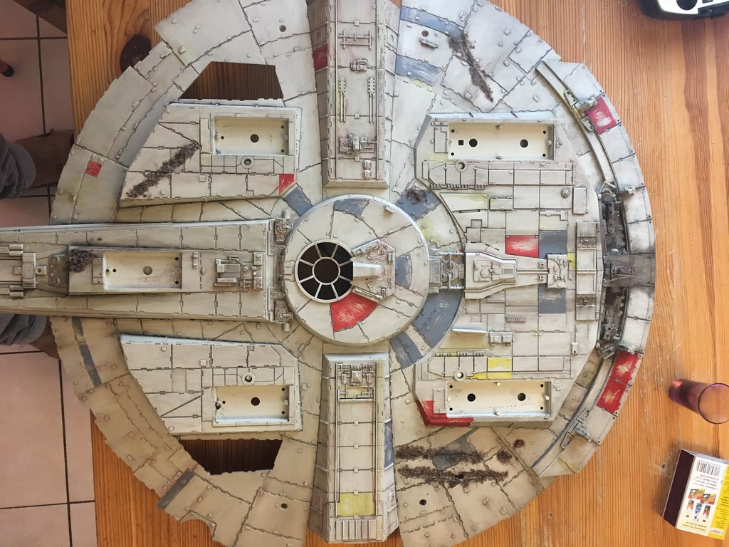 Après une longue hésitation entre je repeint ou je laisse tel quel, je veux un faucon qui a du vécu, donc je vais repeindre ! et c'est là que je vais avoir besoin de conseil, par exemple au lieu de lui faire une peinture complète pour le fond, ne puis je pas garder la couleur "altaya" et rajouter les effet de rouille, d'impact et de plaque de couleur ?peur de faire des coulures ou surépaisseur avec une bombe lors du recovering en blanc !