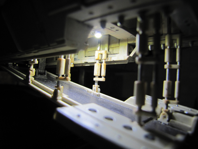 J'ai un peu avancé sur mon Faucon. Voici un essai pour le réacteur. J'ai remplacé la bande diffusante Altaya par la grille Shapeway et une combinaison perso de gélatine derrière la grille.