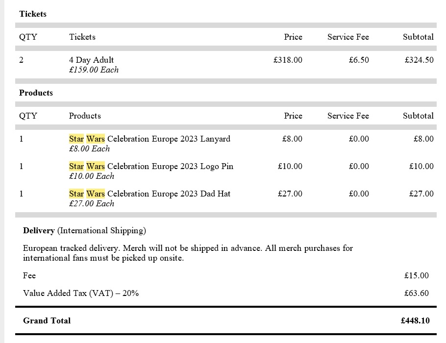 Des tickets simples (et non des packs) adulte supplémentaires pour vendredi, samedi et dimanche seront mis en vente vendredi 27 janvier à partir de 18h heure française : https://twitter.com/SW_Celebration/stat ... 8469568514
