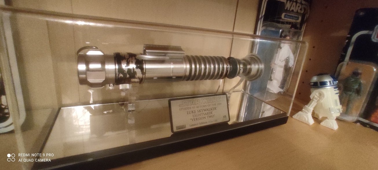 Bref, en constatant qu'un Blaster Han Solo ESB peu aller de 1000 à 1800 € sur Ebay selon l'état et la présence des emballages et valise, j'imagine que ce sabre ne vaut pas plus de 1000/1200 à tout casser.