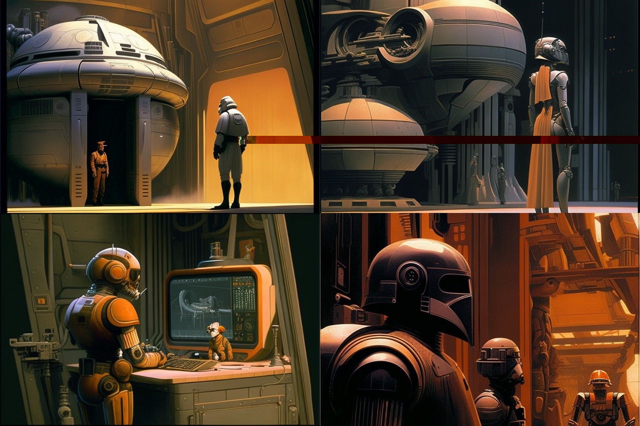 On est indéniablement à un tournant majeur de l’histoire de l’art, et on n’en aperçoit que les balbutiements c’est certain, tellement le progrès avance exponentiellement. Demain, n’importe qui pourra créer n’importe quoi sans aucune compétence artistique, dans la limite de sa simple imagination. Un réalisateur pourra faire des centaines de concepts arts pendant qu’il écrit un scénario en pyjama dans son lit pour voir ce qui marche ou pas, en admettant que l’on ait toujours besoin de lui pour écrire le scénario. Ça paraît très dystopique, mais ça pose de réelles questions sur la place de l’artiste dans la société, et ça remet en question la raison d’être des créateurs.