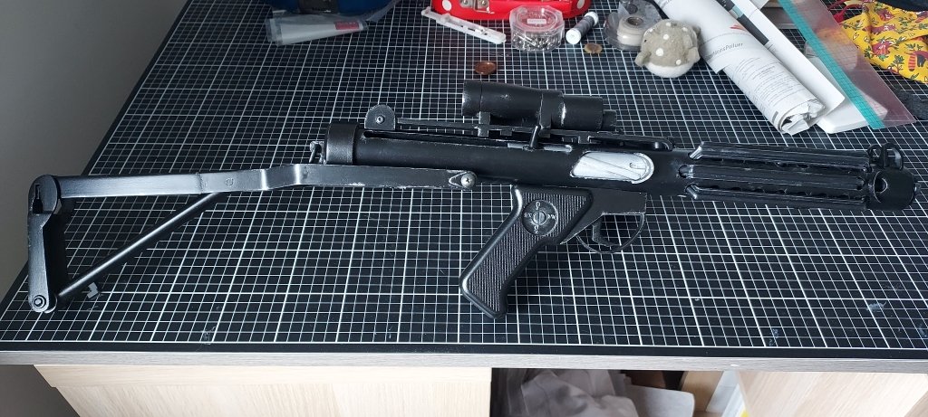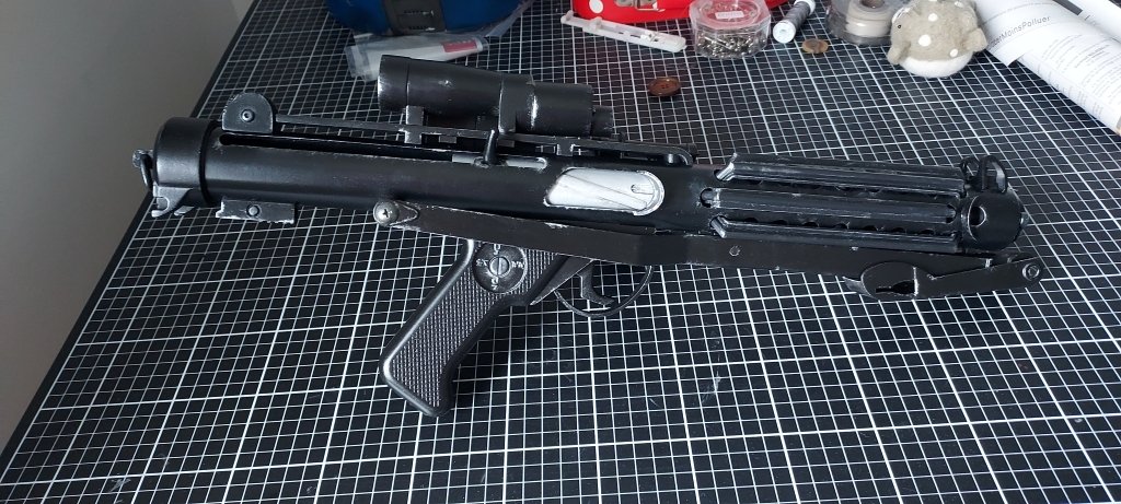Très chouette réalisation. J'ai aussi en projet de fair ce genre d'arme, mais "fonctionnel". Enfin... J'entends par là, récupérer le système d'un petit pistolet nerf et refaire la carcasse pour que ça colle à celui voulu de l'univers SW.