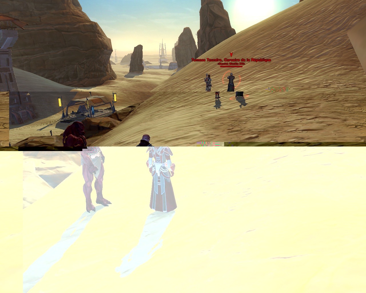 Nous avons littéralement fait de la base républicaine nos quartiers et nous étions tout prêt de la station de taxi et des gardes level 50. Un petit contrebandier à tenter de nous attirer assez prêt pour qu’on se fasse avoir….