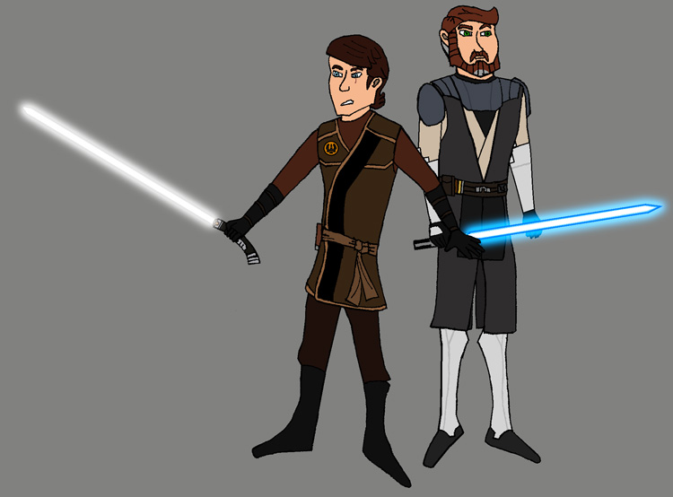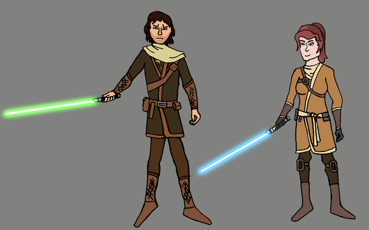 Alors je vois bien le monsieur être un Chevalier Jedi fraichement promu, et la madame, ça peut être un Maître Jedi. ^^