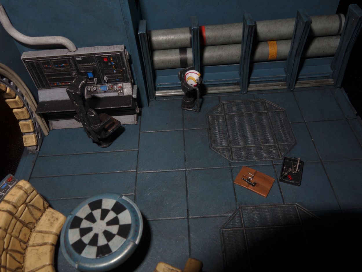 Après avoir longtemps hésité j'ai décidé de me mettre aussi au scratch, parce que le hall est quand même bien vide.. Je vais donc essayer de faire à ma sauce l'intérieur en m'inspirant des captures d'écran des films et de l'excellent travail de super7. Mon projet final est de réaliser un véritable diorama d'une des scènes de la trilogie, peut-être même de SW7, je n'ai pas encore bien réfléchi à cela. Mais reproduire un décors tout autour du faucon, ça serait une vraie tuerie !