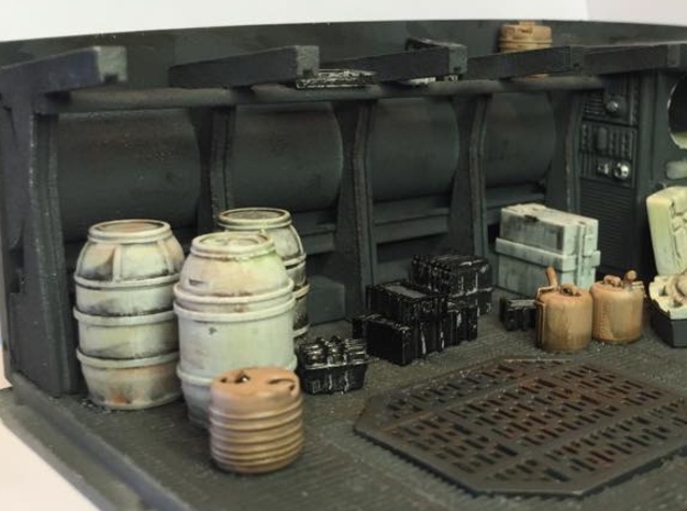 Peux tu me dire où l'on peut trouver le kit du bloc de membrures entre autres détails avec la grosse canalisation , pour habiller la cloison ? sur shapeways , je n' ai pas réussi à le trouver ( ou je cherche mal...... ) on y trouve le sol comme le tien mais pas la paroi; pour autant, sur la photo illustrant le kit de conteneurs en vente sur le site , il apparait dans une configuration tout à fait identique à d'autres photos trouvées sur le net , ....... j' en conclus naïvement ( d 'autant que ça me conviendrait à merveille ) qu' il doit exister