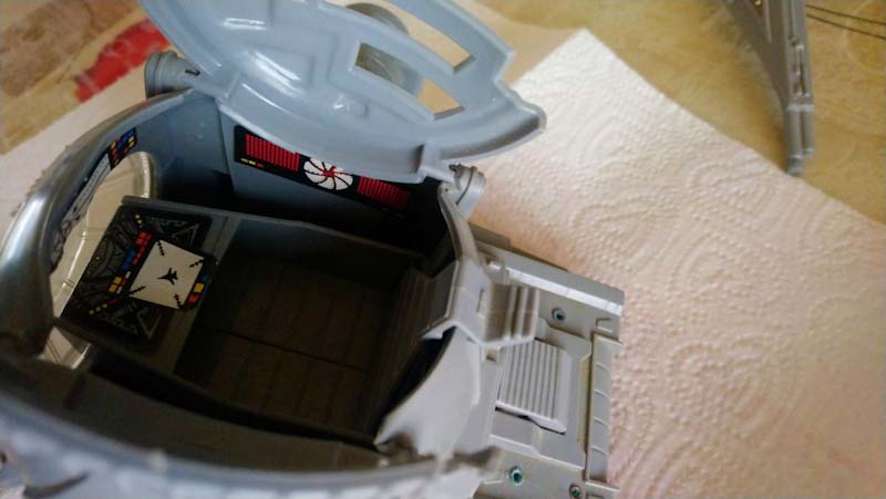 Alors... Il est globalement en bon état, le plastique est solide. Mais il y a des autocollants un peu bizarres, tant à l'intérieur (l'avion avec le viseur) qu'à l'extérieur (les immatriculations noires). Pour l'extérieur, on peut les enlever facilement, mais à l'intérieur, j'ai peur que ça endommage l'autocollant d'origine. Et c'est vrai, les autocollants des panneaux solaires ont vécu, et le logement des piles est très endommagé. Je subodore que l'ensemble ne fonctionne plus et aurait besoin d'une restauration. En bon état, fonctionnel, sans travaux dessus, on le trouve entre 100 et 150€ en loose. Le tien, je dirais 80-90 euros, le côté rare étant là, bien que l'état laisse un peu à désirer. Si tu es vendeuse, ça pourrait m'intéresser.
