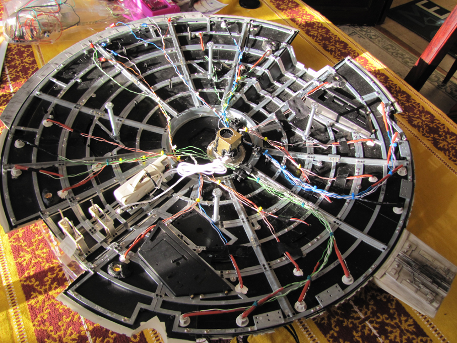 En attendant de vous montrer quelques images de l'éclairage de la coque inférieure -qui est en cours de finalisation - voici un petit ajout de déco pour la salle Dejarik. On verra si il y a suffisamment de place pour l'installer.