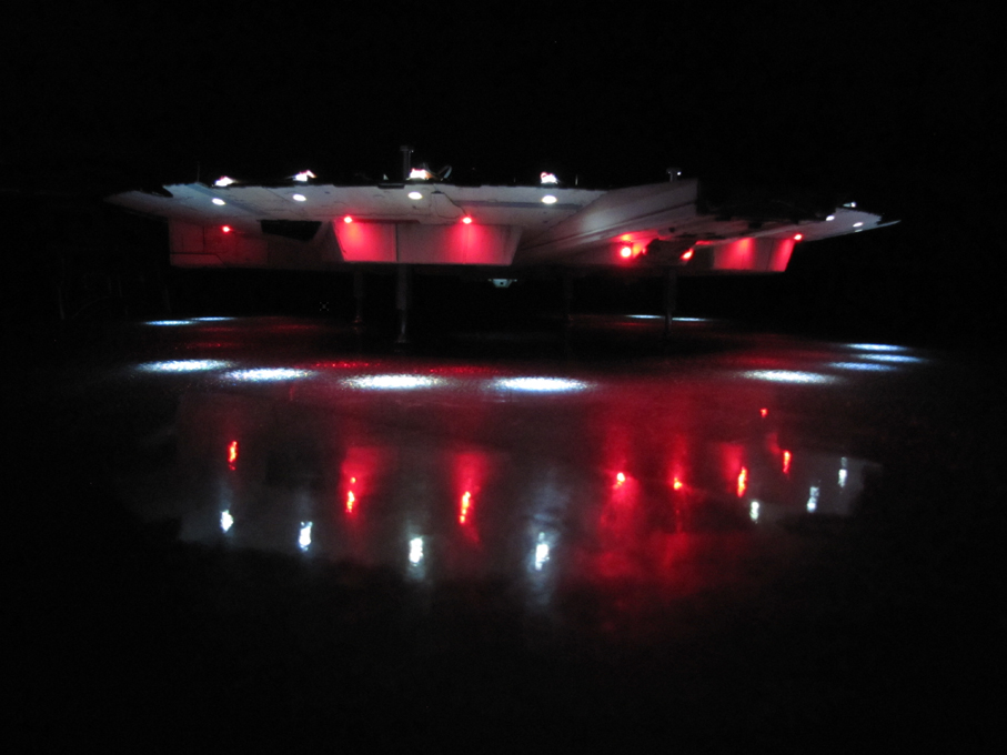 J ai essayé de mettre ma led wire sous le plancher du faucon, elle était relié à un petit boîtier avec 3 piles.